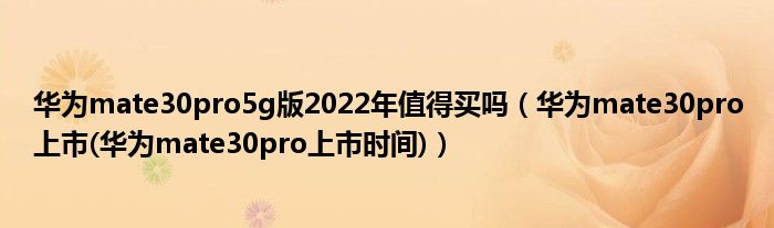 大家好,小常来为大家解答以上问题。华为mate30pro5g版2022年值得买吗,华为mate30pro上市(华为mate30pro上市时间)很多人还不知道,现在让我们一起来看看吧!