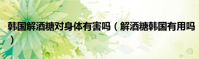 大家好,小晋来为大家解答以下问题,关于韩国解酒糖对身体有害吗,解酒糖韩国有用吗很多人还不知道,今天让我们一起来看看吧!
