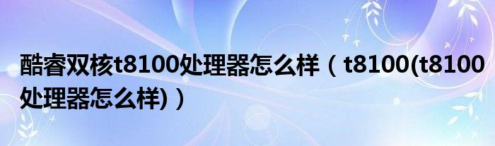 大家好,小常来为大家解答以上问题。酷睿双核t8100处理器怎么样,t8100(t8100处理器怎么样)很多人还不知道,现在让我们一起来看看吧!