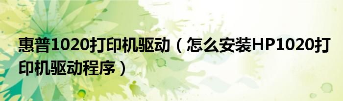 大家好,小常来为大家解答以上问题。惠普1020打印机驱动,怎么安装HP1020打印机驱动程序很多人还不知道,现在让我们一起来看看吧!