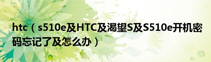 1,HTC 渴望S S510e开机密码忘记了,怎么办?:开机密码是为了保护您手机中个人隐私资料,手机中并没有相关恢复的设置,您可以再次回忆下设定的密码,若您确认已忘记,只有通过按键的方式恢复出厂了。*关机状态下*(将电池拔除静置3-5分钟进行后再进行下述操作)1.长按音量向下键+电源开关,之后进入工模2.利用音量向下键选择到""FACTORY RESET"",再按下电源键确认执行3.系统自动重启(大约4-5分钟后进入首次开机时的setup界面)