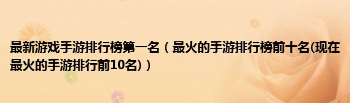大家好,小常来为大家解答以上问题。最新游戏手游排行榜第一名,最火的手游排行榜前十名(现在最火的手游排行前10名)很多人还不知道,现在让我们一起来看看吧!
