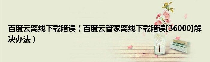 大家好,今天小悦来为大家解答以上问题。百度云离线下载错误,百度云管家离线下载错误[36000]解决办法很多人还不知道,现在让我们一起来看看吧!
