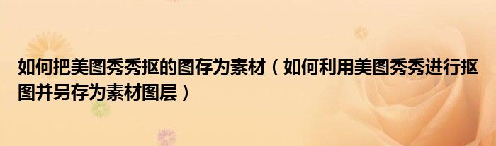 大家好,今天小悦来为大家解答以上问题。如何把美图秀秀抠的图存为素材,如何利用美图秀秀进行抠图并另存为素材图层很多人还不知道,现在让我们一起来看看吧!