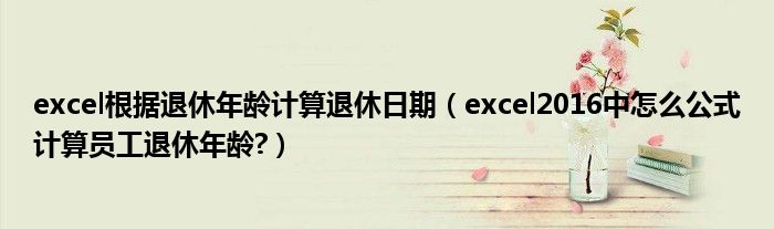 大家好,今天小悦来为大家解答以上问题。excel根据退休年龄计算退休日期,excel2016中怎么公式计算员工退休年龄?很多人还不知道,现在让我们一起来看看吧!