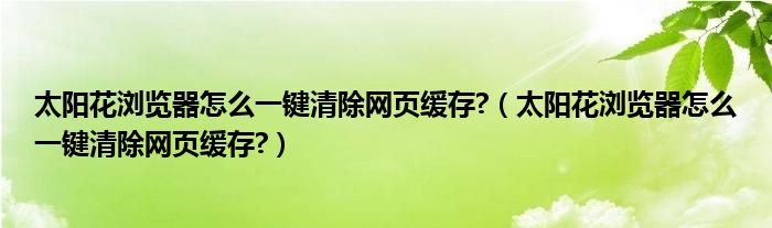 大家好,今天小悦来为大家解答以上问题。太阳花浏览器怎么一键清除网页缓存?,太阳花浏览器怎么一键清除网页缓存?很多人还不知道,现在让我们一起来看看吧!