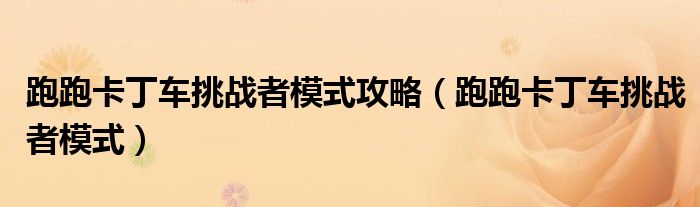 跑跑卡丁车挑战者模式攻略,跑跑卡丁车挑战者模式这个很多人还不知道,小飞来为大家解答以上的问题。现在让我们一起来看看吧!