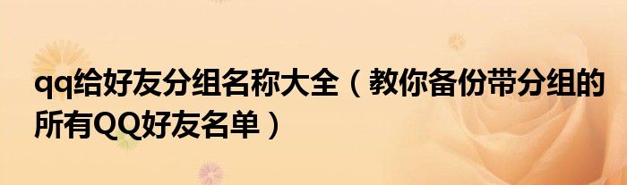 大家好,今天小悦来为大家解答以上问题。qq给好友分组名称大全,教你备份带分组的所有QQ好友名单很多人还不知道,现在让我们一起来看看吧!