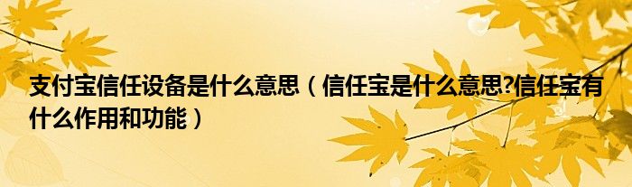 大家好,今天小悦来为大家解答以上问题。支付宝信任设备是什么意思,信任宝是什么意思?信任宝有什么作用和功能很多人还不知道,现在让我们一起来看看吧!