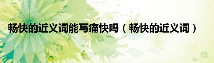 大家好,小飞来为大家解答以上的问题。畅快的近义词能写痛快吗,畅快的近义词这个很多人还不知道,现在让我们一起来看看吧!