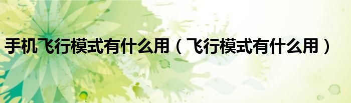 手机飞行模式的功能