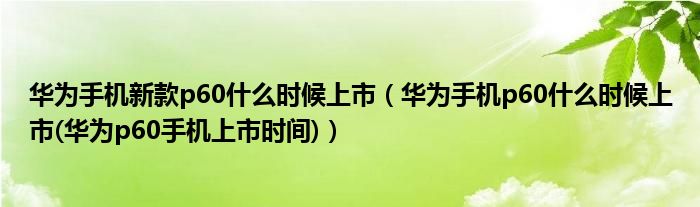 大家好,小常来为大家解答以上问题。华为手机新款p60什么时候上市,华为手机p60什么时候上市(华为p60手机上市时间)很多人还不知道,现在让我们一起来看看吧!