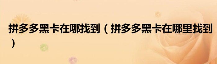 大家好,跳跳为你解答以上问题。拼多多黑卡在哪找到,拼多多黑卡在哪里找到这个问题很多人还不知道,现在让我们一起来看看吧!