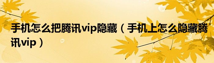 大家好,跳跳为你解答以上问题。手机怎么把腾讯vip隐藏,手机上怎么隐藏腾讯vip这个问题很多人还不知道,现在让我们一起来看看吧!