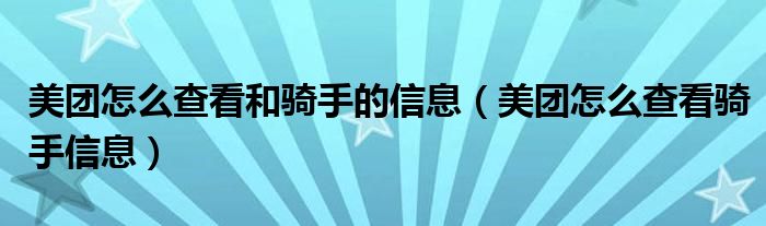 大家好,跳跳为你解答以上问题。美团怎么查看和骑手的信息,美团怎么查看骑手信息这个问题很多人还不知道,现在让我们一起来看看吧!