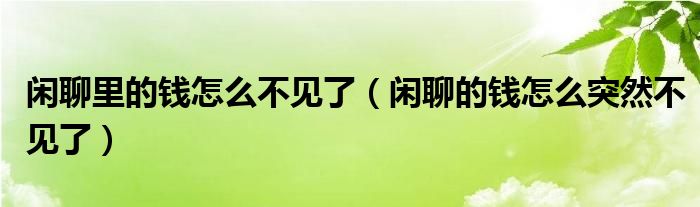大家好,跳跳为你解答以上问题。闲聊里的钱怎么不见了,闲聊的钱怎么突然不见了这个问题很多人还不知道,现在让我们一起来看看吧!