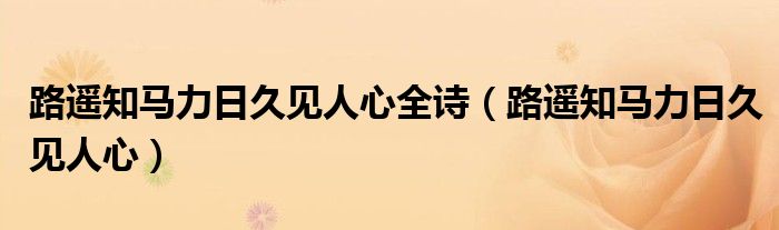 关于路遥知马力日久见人心全诗,路遥知马力日久见人心这个很多人还不知道,今天菲菲来为大家解答以上的问题,现在让我们一起来看看吧!