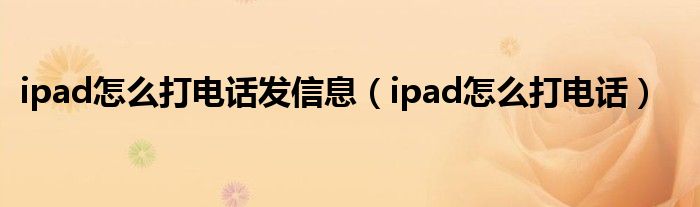 最佳答案大家好,慧慧来为大家解答以上问题,ipad怎么打电话发信息,ipad怎么打电话很多人还不知道,现在让我们一起来看看吧!如何称呼iPad有很多朋友用iPad,可能毫无疑问是Wifi版,不具备电话功能。相信很多用iPad的朋友都想用iPad打电话,不用随时随地用手机。我说的用iPad打电话,不是指网络电话,而是...