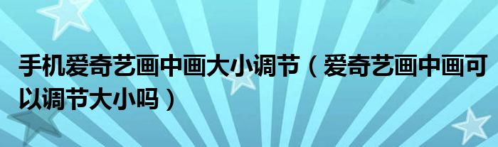 大家好,跳跳为你解答以上问题。手机爱奇艺画中画大小调节,爱奇艺画中画可以调节大小吗这个问题很多人还不知道,现在让我们一起来看看吧!
