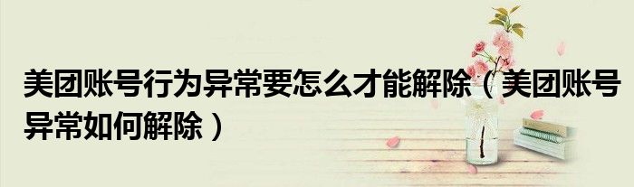 大家好,跳跳为你解答以上问题。美团账号行为异常要怎么才能解除,美团账号异常如何解除这个问题很多人还不知道,现在让我们一起来看看吧!