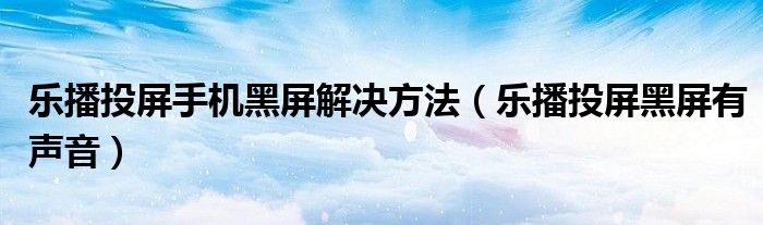 大家好,跳跳为你解答以上问题。乐播投屏手机黑屏解决方法,乐播投屏黑屏有声音这个问题很多人还不知道,现在让我们一起来看看吧!