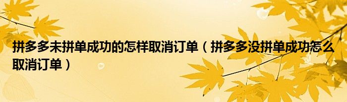 大家好,跳跳为你解答以上问题。拼多多未拼单成功的怎样取消订单,拼多多没拼单成功怎么取消订单这个问题很多人还不知道,现在让我们一起来看看吧!