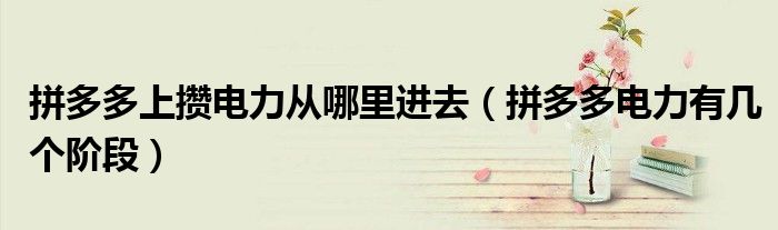 大家好,跳跳为你解答以上问题。拼多多上攒电力从哪里进去,拼多多电力有几个阶段这个问题很多人还不知道,现在让我们一起来看看吧!