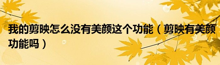 大家好,跳跳为你解答以上问题。我的剪映怎么没有美颜这个功能,剪映有美颜功能吗这个问题很多人还不知道,现在让我们一起来看看吧!
