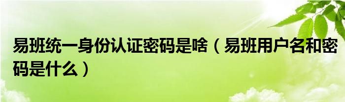 大家好,跳跳为你解答以上问题。易班统一身份认证密码是啥,易班用户名和密码是什么这个问题很多人还不知道,现在让我们一起来看看吧!
