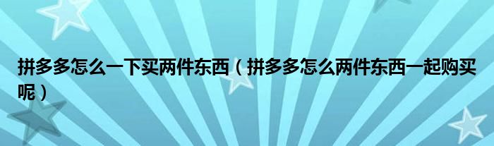 解答:1、拼多多,两件东西不能一起买。拼多多集团是单独付款,单独发货的。你不能同时为两件事付钱。而且不同的货架,不同的订单也不能一起结算。