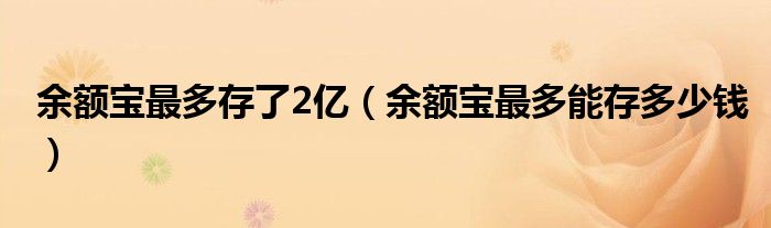 大家好,慧慧来为大家解答以上问题,余额宝最多存了2亿,余额宝最多能存多少钱很多人还不知道,现在让我们一起来看看吧!