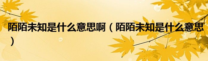 大家好,跳跳为你解答以上问题。陌陌未知是什么意思啊,陌陌未知是什么意思这个问题很多人还不知道,现在让我们一起来看看吧!