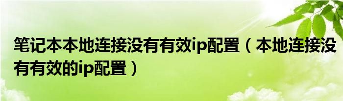 大家好,慧慧来为大家解答以上问题,笔记本本地连接没有有效ip配置,本地连接没有有效的ip配置很多人还不知道,现在让我们一起来看看吧!