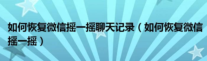 大家好,小晋来为大家解答以下问题,关于如何恢复微信摇一摇聊天记录,如何恢复微信摇一摇很多人还不知道,今天让我们一起来看看吧!
