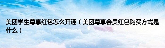 大家好,跳跳为你解答以上问题。美团学生尊享红包怎么开通,美团尊享会员红包购买方式是什么这个问题很多人还不知道,现在让我们一起来看看吧!
