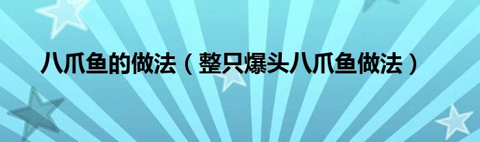 大家好,小晋来为大家解答以下问题,关于八爪鱼的做法,整只爆头八爪鱼做法很多人还不知道,今天让我们一起来看看吧!