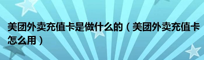 大家好,跳跳为你解答以上问题。美团外卖充值卡是做什么的,美团外卖充值卡怎么用这个问题很多人还不知道,现在让我们一起来看看吧!