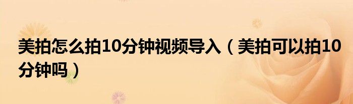 大家好,跳跳为你解答以上问题。美拍怎么拍10分钟视频导入,美拍可以拍10分钟吗这个问题很多人还不知道,现在让我们一起来看看吧!