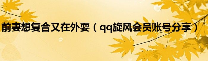 大家好,慧慧来为大家解答以上问题,前妻想复合又在外耍,qq旋风会员账号分享很多人还不知道,现在让我们一起来看看吧!