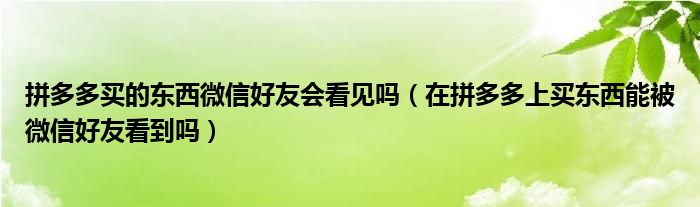 解答:1、在拼多多上购物的时候,如果打开了小圈子功能,那么微信好友就可以看到了。如果没有开启小圈子功能,那么微信好友是看不到的。