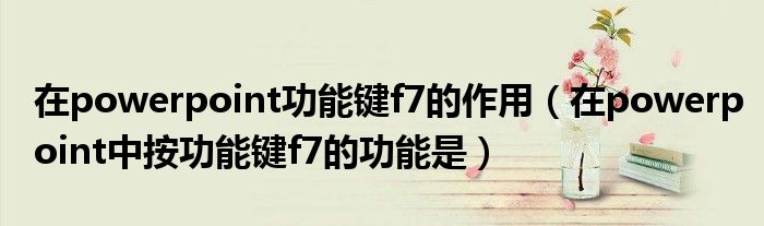 大家好,跳跳为你解答以上问题。在powerpoint功能键f7的作用,在powerpoint中按功能键f7的功能是这个问题很多人还不知道,现在让我们一起来看看吧!