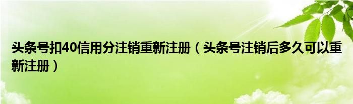 大家好,跳跳为你解答以上问题。头条号扣40信用分注销重新注册,头条号注销后多久可以重新注册这个问题很多人还不知道,现在让我们一起来看看吧!