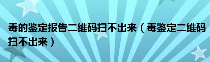大家好,跳跳为你解答以上问题。毒的鉴定报告二维码扫不出来,毒鉴定二维码扫不出来这个问题很多人还不知道,现在让我们一起来看看吧!