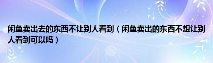 大家好,跳跳为你解答以上问题。闲鱼卖出去的东西不让别人看到,闲鱼卖出的东西不想让别人看到可以吗这个问题很多人还不知道,现在让我们一起来看看吧!