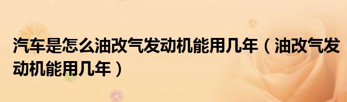 大家好,小晋来为大家解答以下问题,关于汽车是怎么油改气发动机能用几年,油改气发动机能用几年很多人还不知道,今天让我们一起来看看吧!