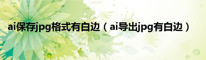 关于ai保存jpg格式有白边,ai导出jpg有白边这个很多人还不知道,今天菲菲来为大家解答以上的问题,现在让我们一起来看看吧!