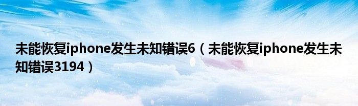大家好,慧慧来为大家解答以上问题,未能恢复iphone发生未知错误6,未能恢复iphone发生未知错误3194很多人还不知道,现在让我们一起来看看吧!