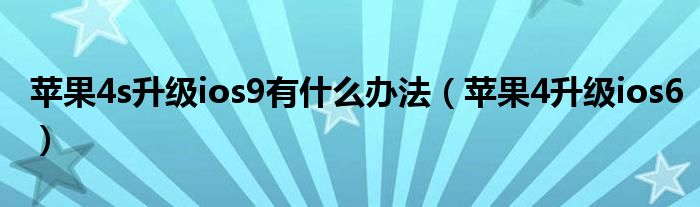 大家好,慧慧来为大家解答以上问题,苹果4s升级ios9有什么办法,苹果4升级ios6很多人还不知道,现在让我们一起来看看吧!