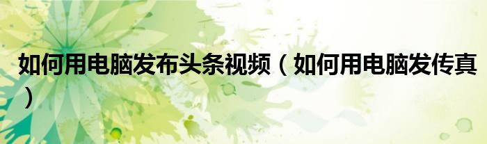 大家好,慧慧来为大家解答以上问题,如何用电脑发布头条视频,如何用电脑发传真很多人还不知道,现在让我们一起来看看吧!