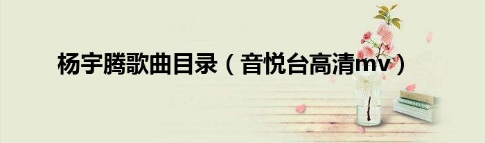 大家好,慧慧来为大家解答以上问题,杨宇腾歌曲目录,音悦台高清mv很多人还不知道,现在让我们一起来看看吧!